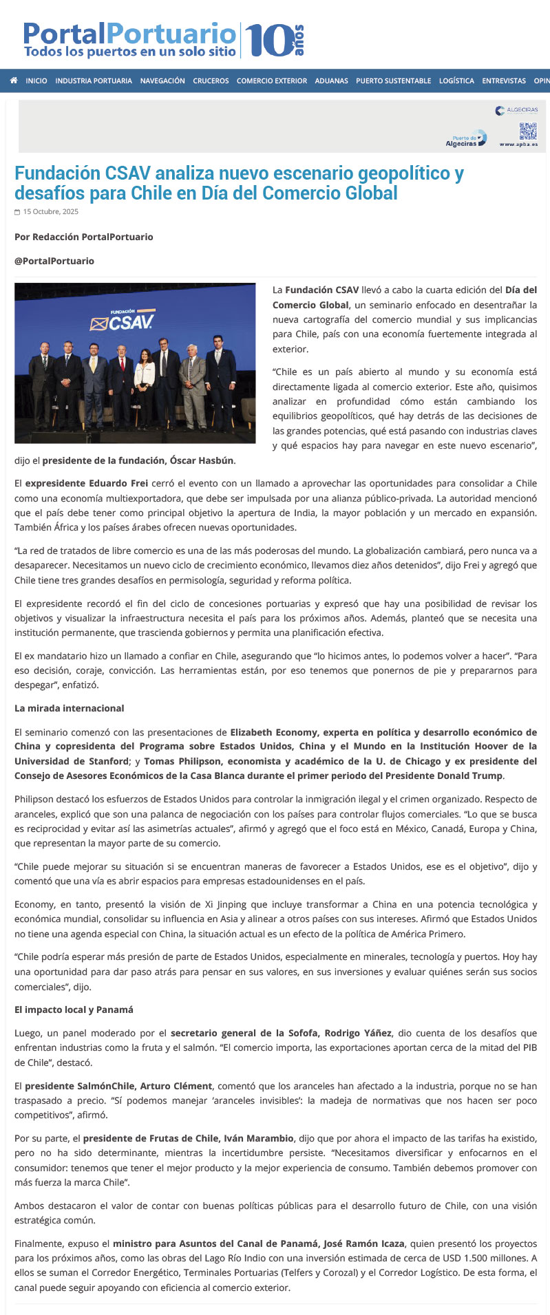 Fundación CSAV analiza nuevo escenario geopolítico y desafíos para Chile en Día del Comercio Global | portalportuario.cl