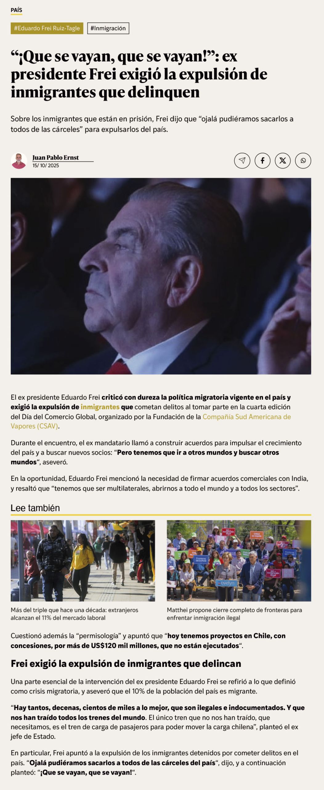 “¡Que se vayan, que se vayan!”: ex presidente Frei exigió la expulsión de inmigrantes que delinquen | El Dinamo