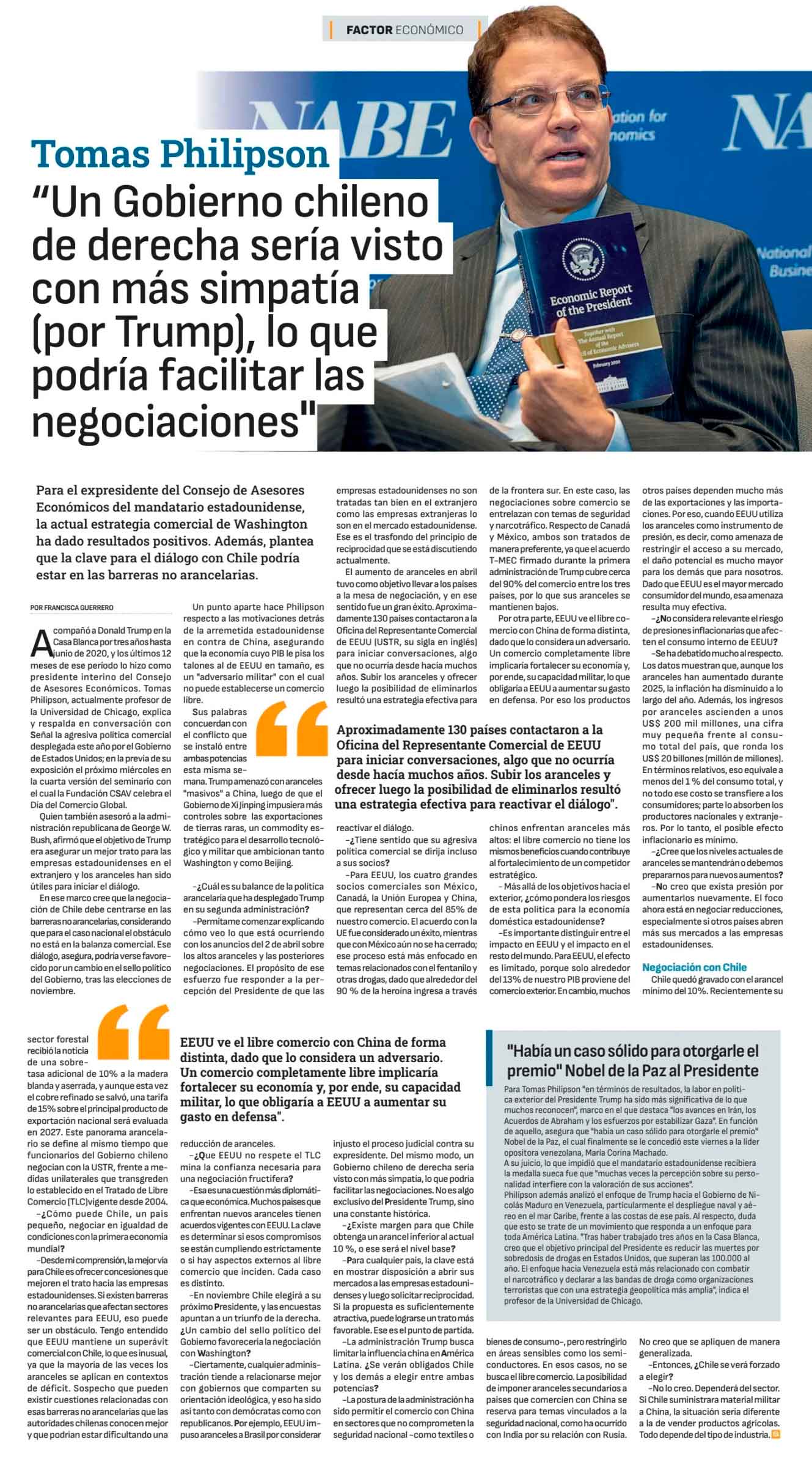 Tomas Philipson “Un Gobierno chileno de derecha sería visto con más simpatía (por Trump), lo que podría facilitar las negociaciones” | SeñalDF